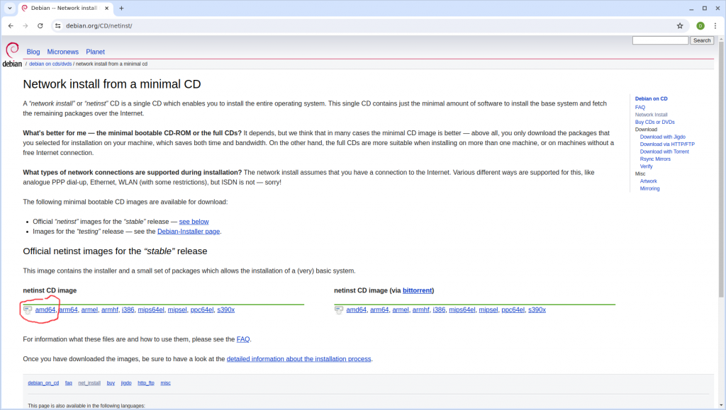 1. Download the appropriate Netinst CD Image